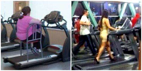 Well, sepertinya treadmill cara pakainya nggak kayak gitu mbak…