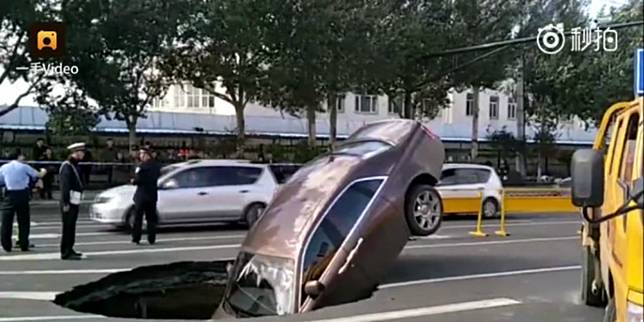 Sialnya, mobil seharga five juta yuan (Rp10,12 miliar) ini justru terperosok ke lubang saluran pembuangan yang tak ditutup. Lubang yang menganga ini berada di tengah jalan.